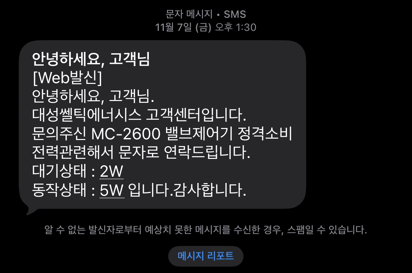 물어봐서 소모 전력을 물어봤더니