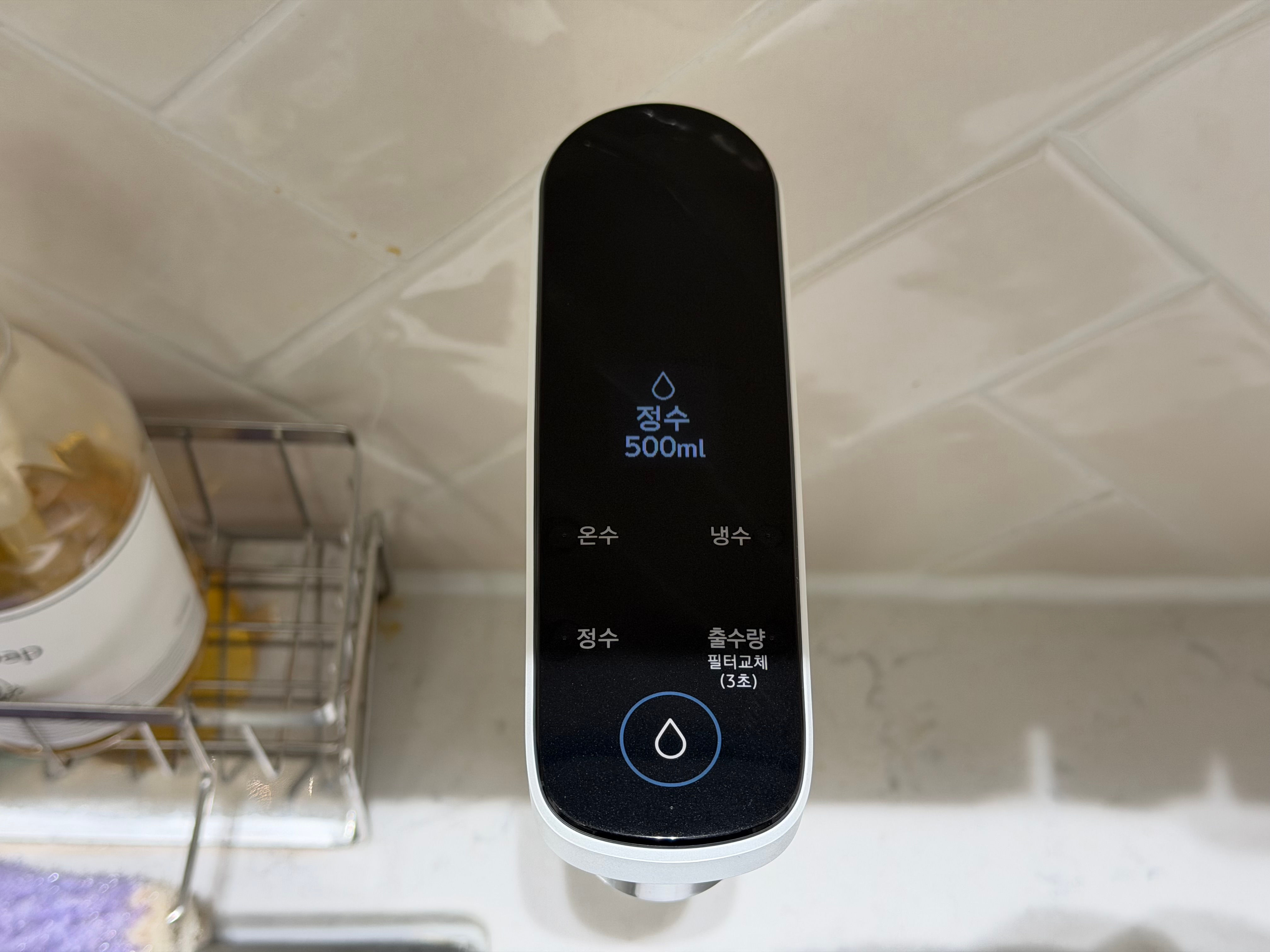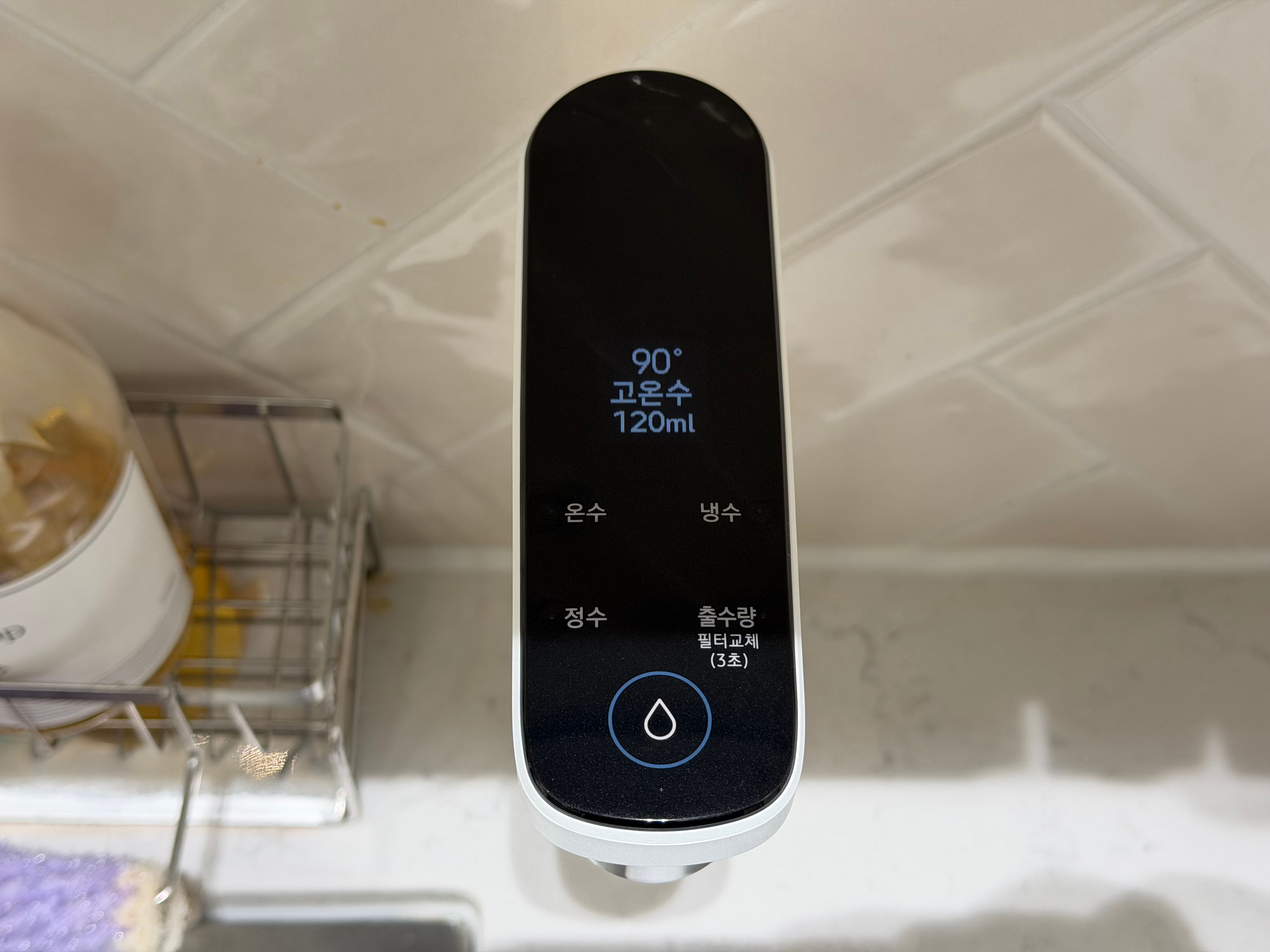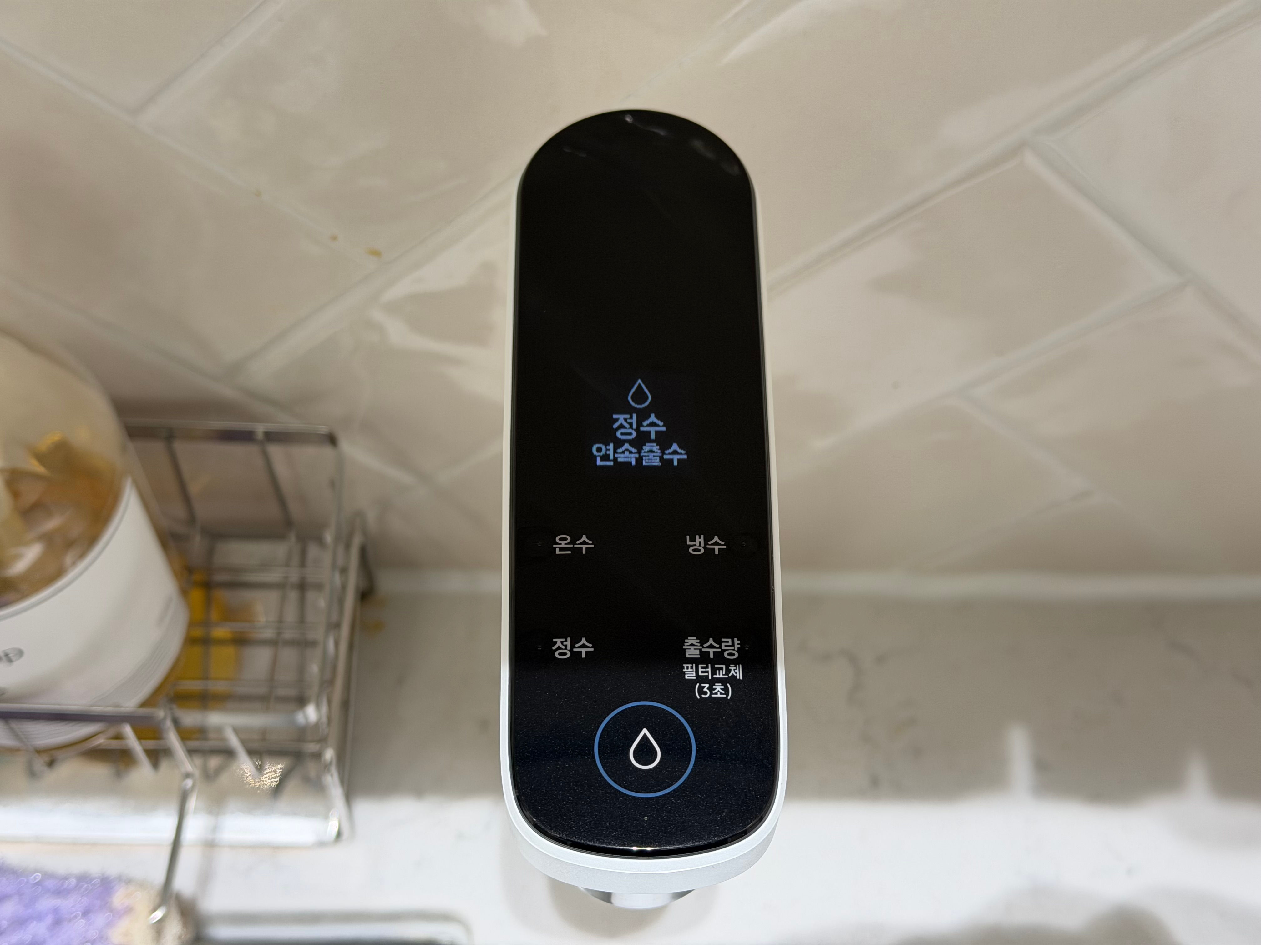온수 기능은 온수 버튼을 몇초 눌러주는 걸로
