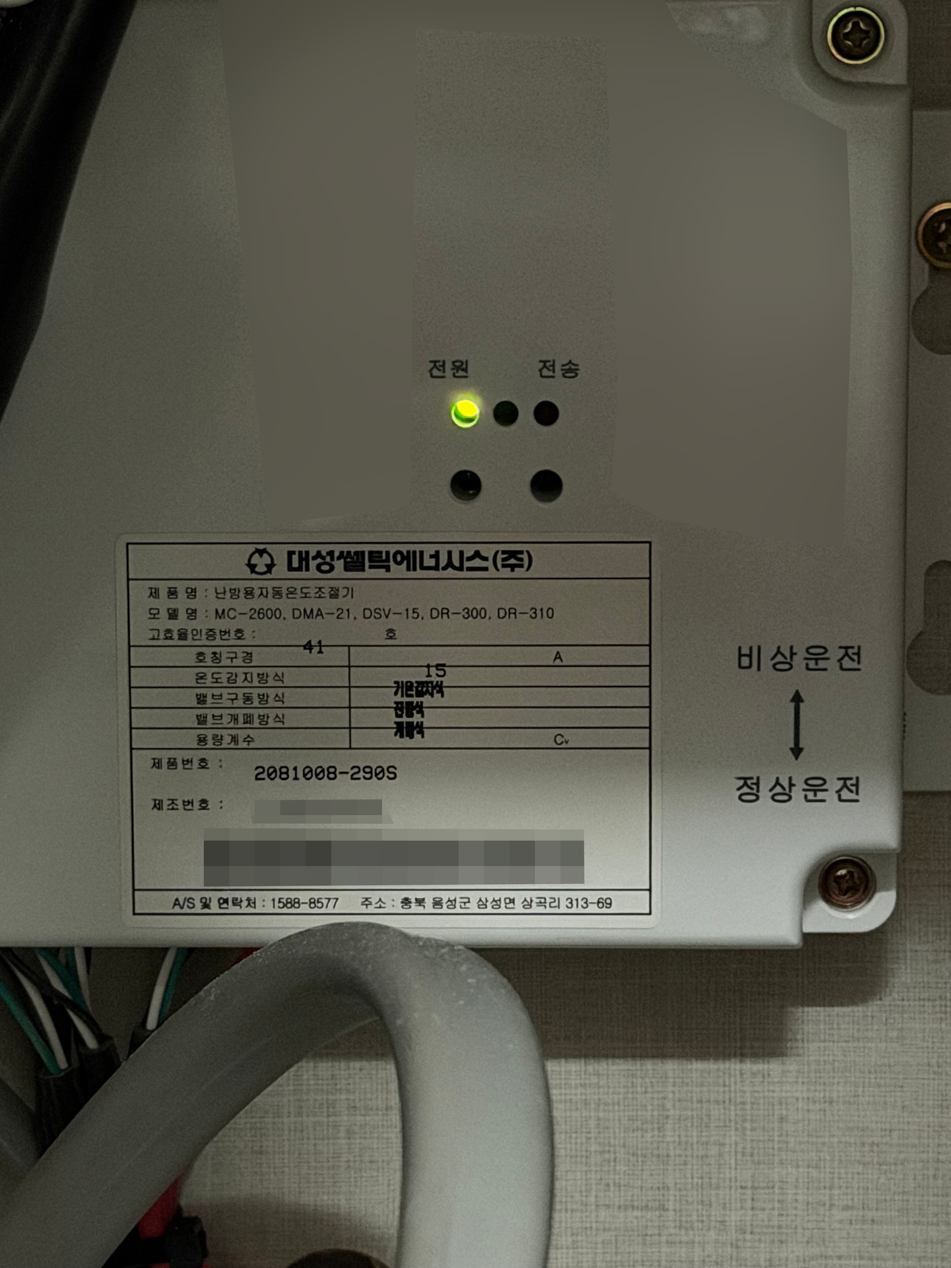 보일러 난방용 자동 온도 조절기 컨트롤 박스에 연결되는 전원선이더군요.