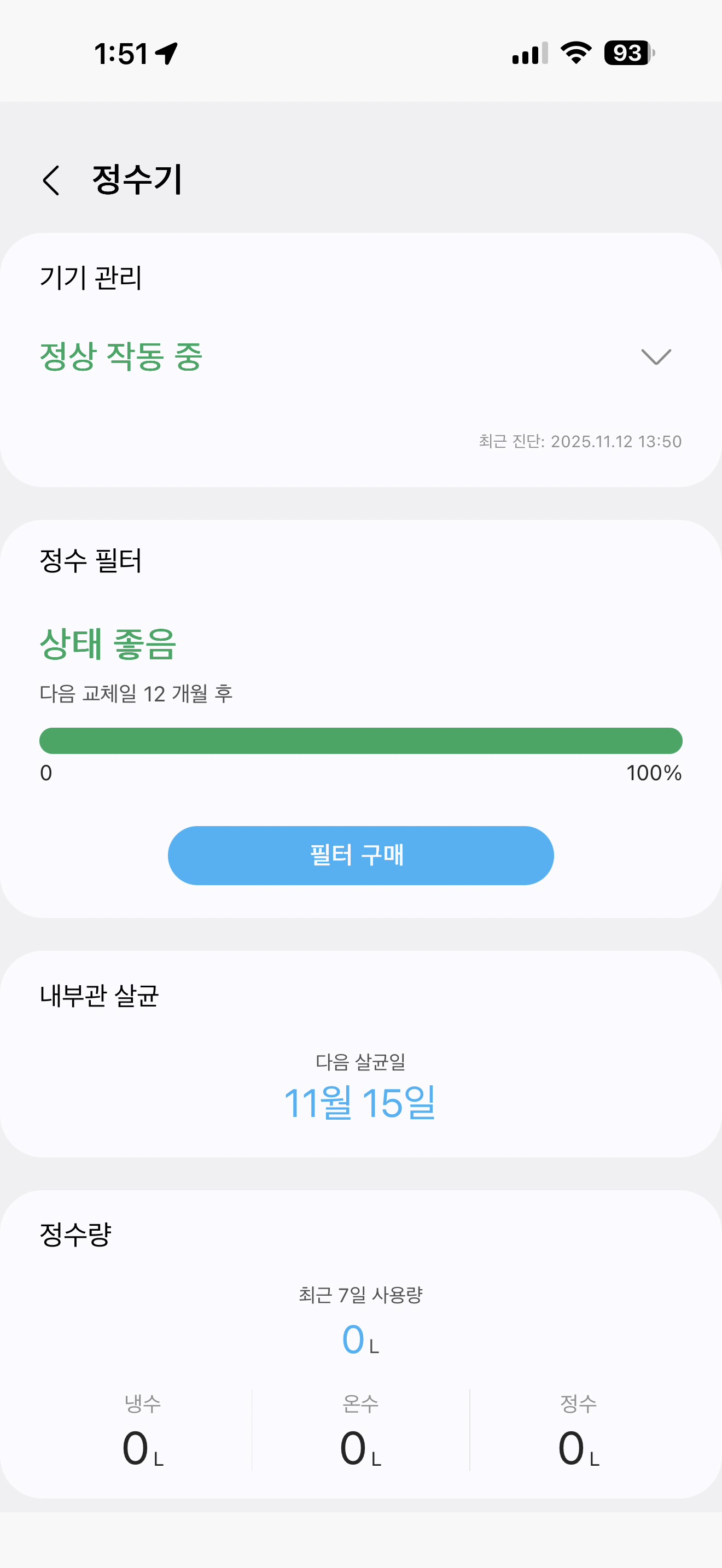1년에 한 번 정도 필터 교체 알람 확인 말고는